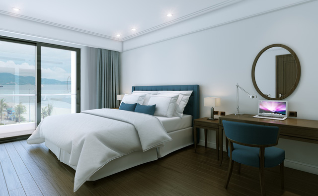 Phòng ngủ sang trọng đón ánh sáng tự nhiên.
